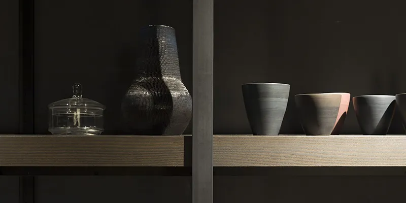 Le design associe subtilement des montants métalliques à des étagères en cèdre teinté, créant un contraste visuel agréable entre finesse des structures et épaisseur marquée des étagères. Cet équilibre donne au modèle Fly une allure minimaliste mais pleine de personnalité.