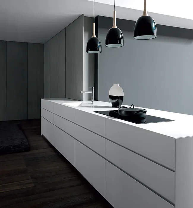 Avec DaVinci, explorez la cuisine Fly Modulnova, une création qui incarne la rencontre entre minimalisme, flexibilité et innovation. Nos experts vous accompagnent dans la conception d’un projet sur mesure, pensé pour conjuguer design italien et confort d’utilisation.