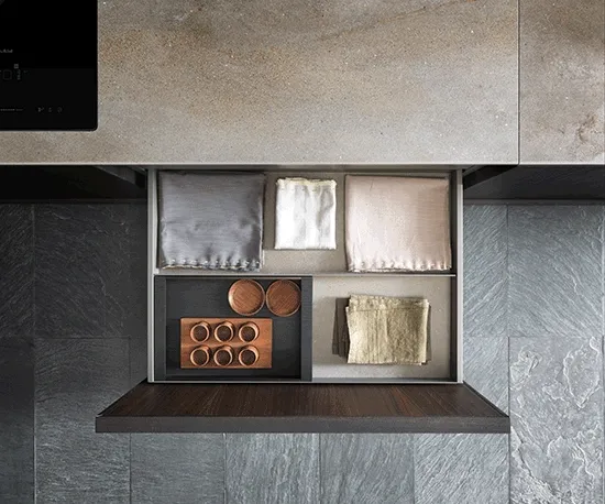 Le jeu de proportions, l’équilibre entre les matériaux et l’intégration des solutions fonctionnelles font du modèle Frame une cuisine à la fois moderne, intemporelle et pratique, pensée pour répondre aux exigences d’un habitat haut de gamme.