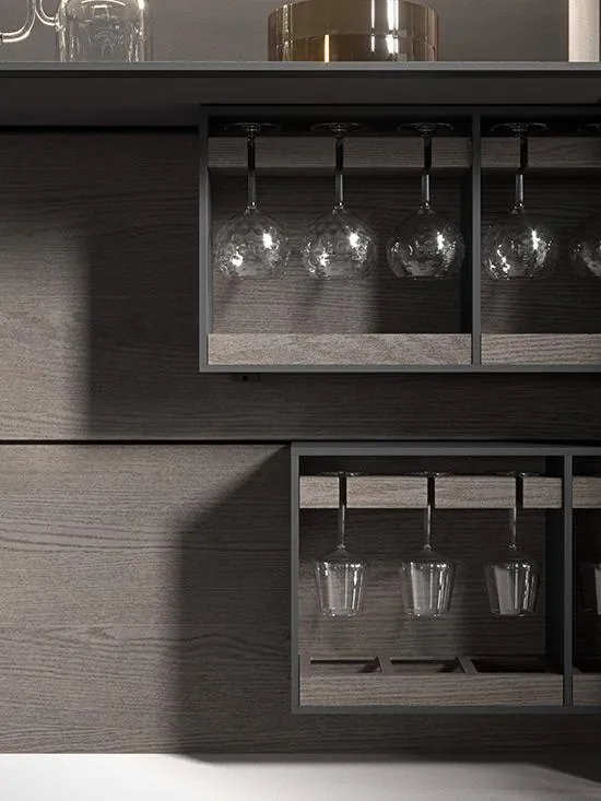 MH6 Living se distingue par ses volumes généreux, ses modules toute hauteur et ses compositions audacieuses. Finitions variées, façades sans plinthe ou poignées (push-pull), portes en saillie de 15 cm, niches intégrées rétroéclairées—tout est conçu pour sublimer le salon ou le séjour.