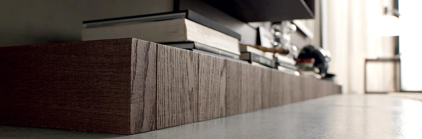 More propose une modularité intuitive : niches ouvertes, paniers extractibles, portes relevables, bibliothèques et associations de matériaux innovants. Les finitions laquées se combinent aisément avec des éléments en bois, créant des ambiances uniques.
